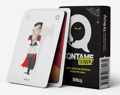 Un libro con las sugerencias de juego y 50 naipes con personajes, escenarios, animales, objetos y efectos especiales.