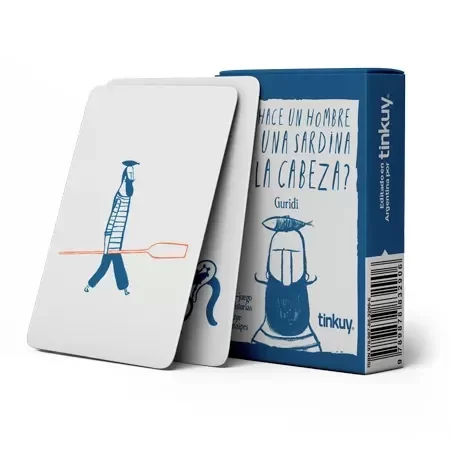 El objetivo es crear y contar una historia. Contiene 3 sugerencias de juego: ¿Qué hace un hombre con una sardina en la cabeza?, ¡Y así fue como terminé con una sardina en la cabeza! y Cadáver exquisito de preguntas