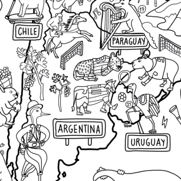El Proyecto Animales de América es una lámina gigante en blanco y negro para colorear , que nos muestra la fauna representativa de sus 35 países.